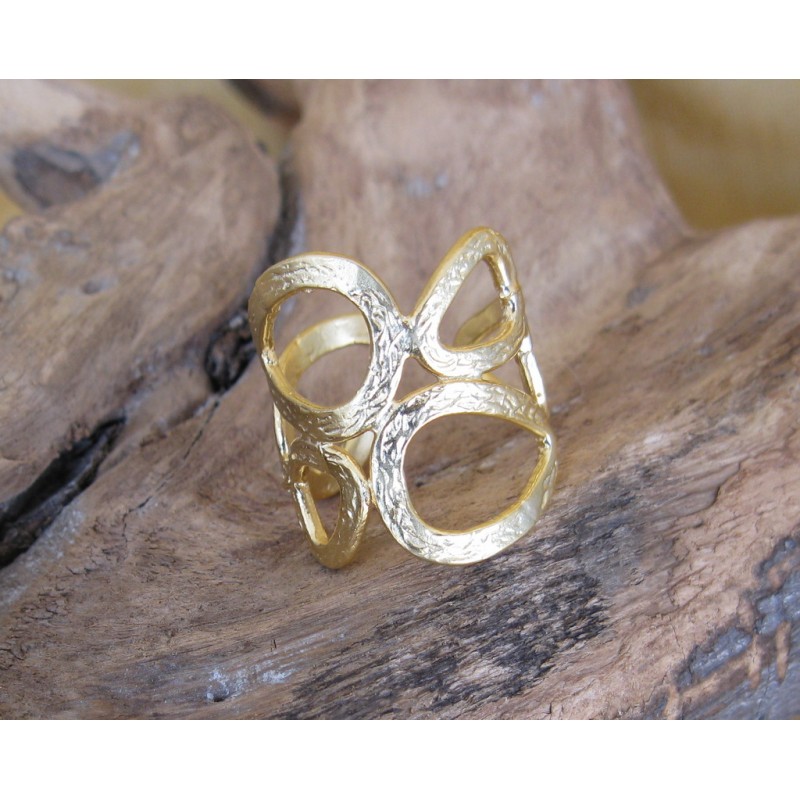 Anello in lega zama con decori etnici gold,oro satinato. Dimensione circa 30 mm. Confezione da 2 pz . Misura regolabile.
