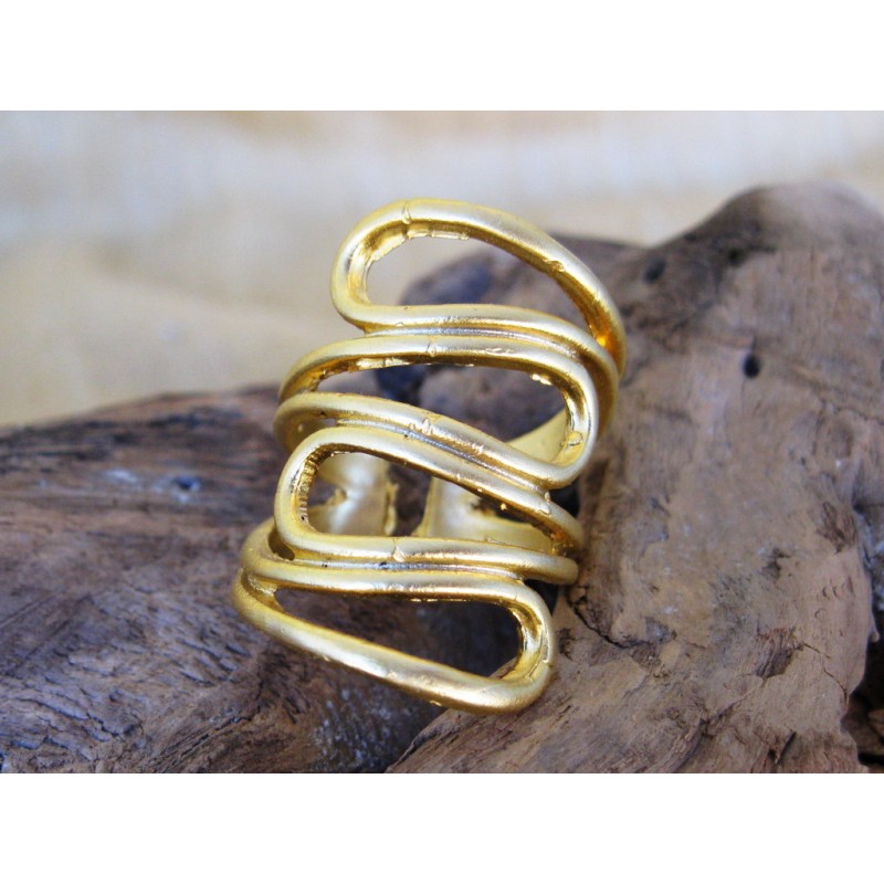 Anello in lega zama con decori etnici gold,oro satinato. Dimensione circa 35 mm. Confezione da 2 pz . Misura regolabile.