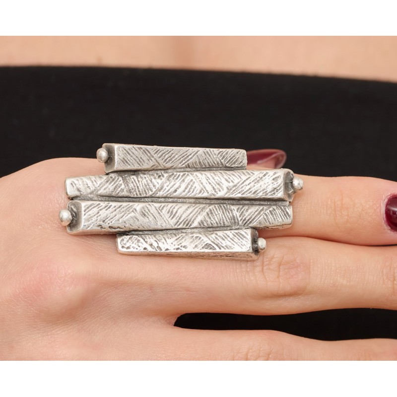 Anello in lega zama con decori etnici .