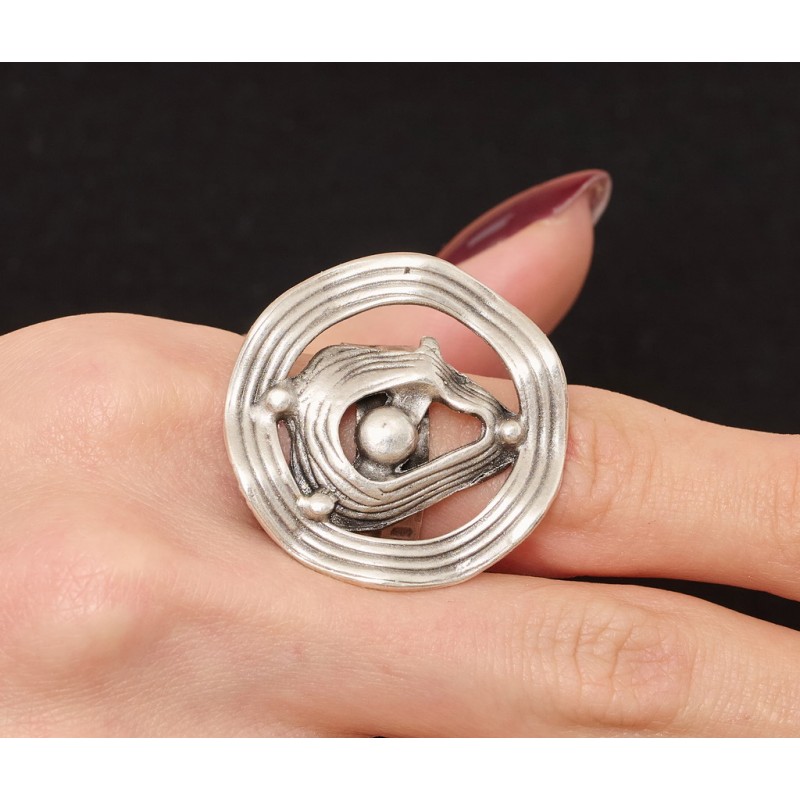 Anello in lega zama con decori etnici .