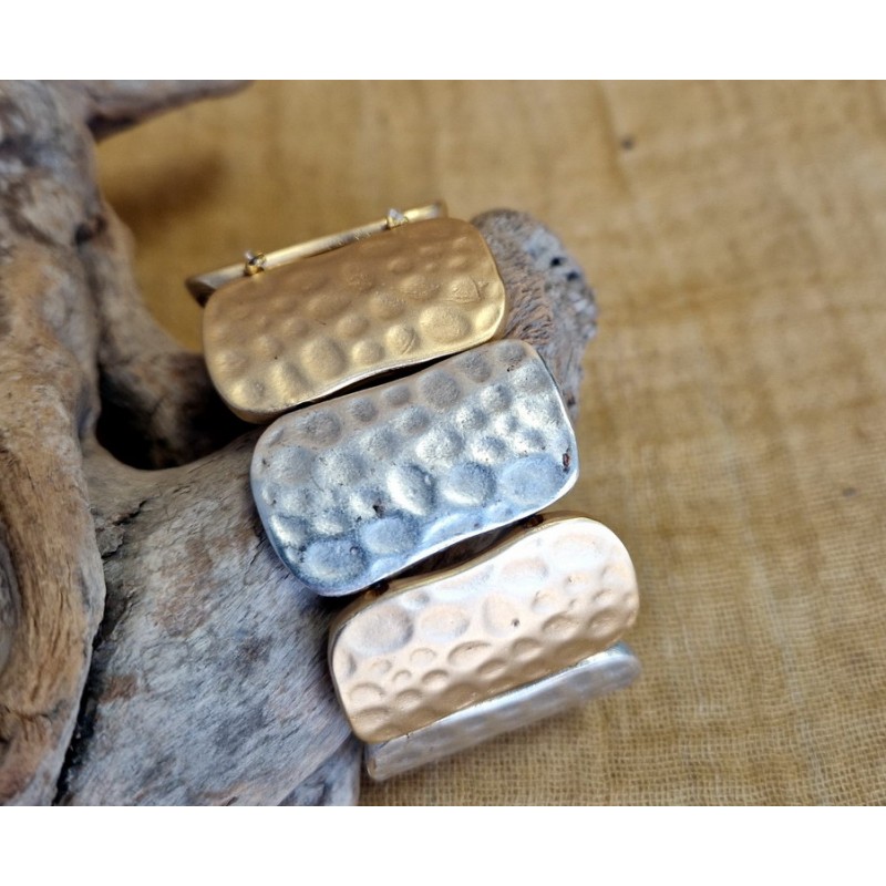 Bracciale in metallo zama .Colore silver satinato e oro satinato.Dimensione circa 31 mm di larghezza .Confezione da 1 pezzo.