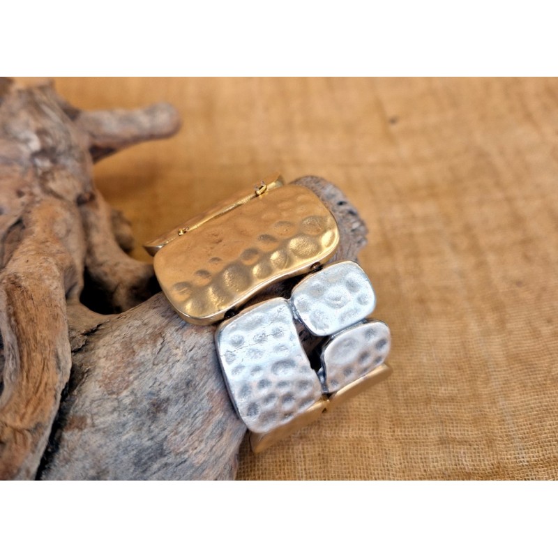 Bracciale in metallo zama .Colore silver satinato e oro satinato.Dimensione circa 34 mm di larghezza .Confezione da 1 pezzo.