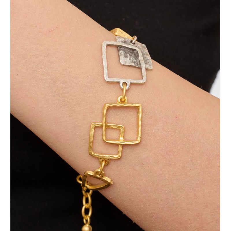 Bracciale in metallo zama .Colore silver satinato e oro satinato.Dimensione circa 34 mm di larghezza .Confezione da 1 pezzo.
