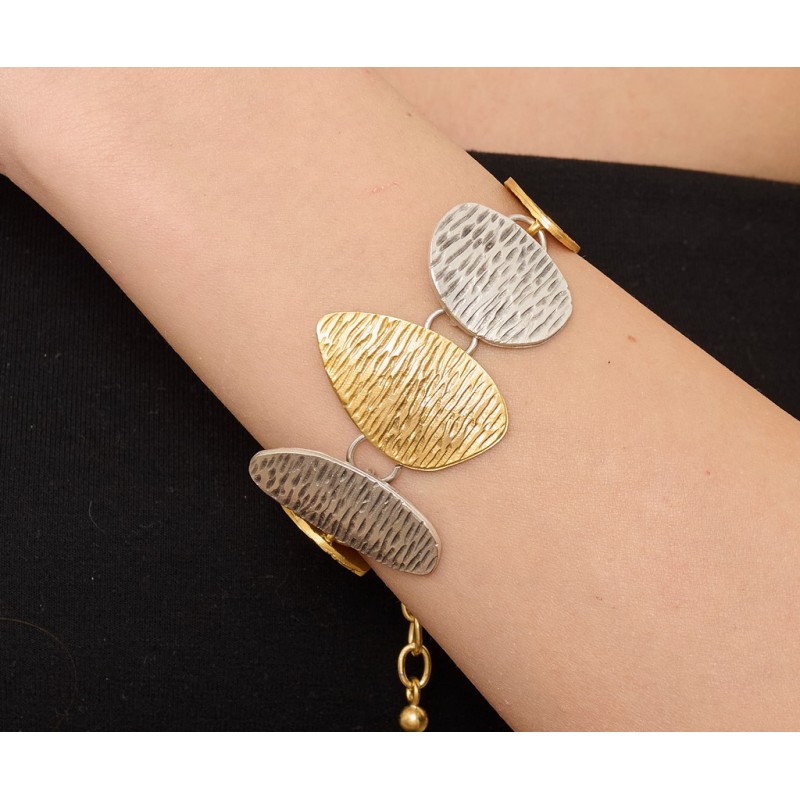 Bracciale in metallo zama .Colore silver satinato e oro satinato.Dimensione circa 30 mm di larghezza .Confezione da 1 pezzo.