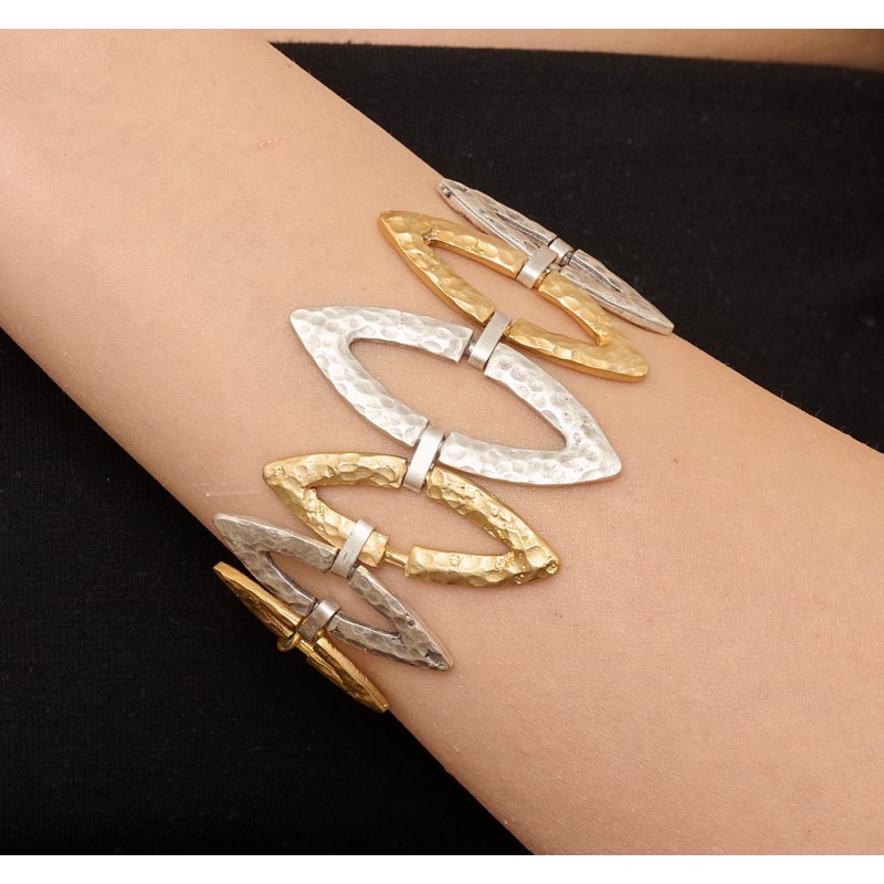 Bracciale in metallo zama .Colore silver satinato e oro satinato.Dimensione circa 27 mm di larghezza .Confezione da 1 pezzo.