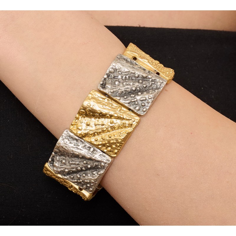 Bracciale in metallo zama elastico.Colore silver satinato e oro satinato.Dimensione circa 32 mm di larghezza .Confezione da 1 pezzo.