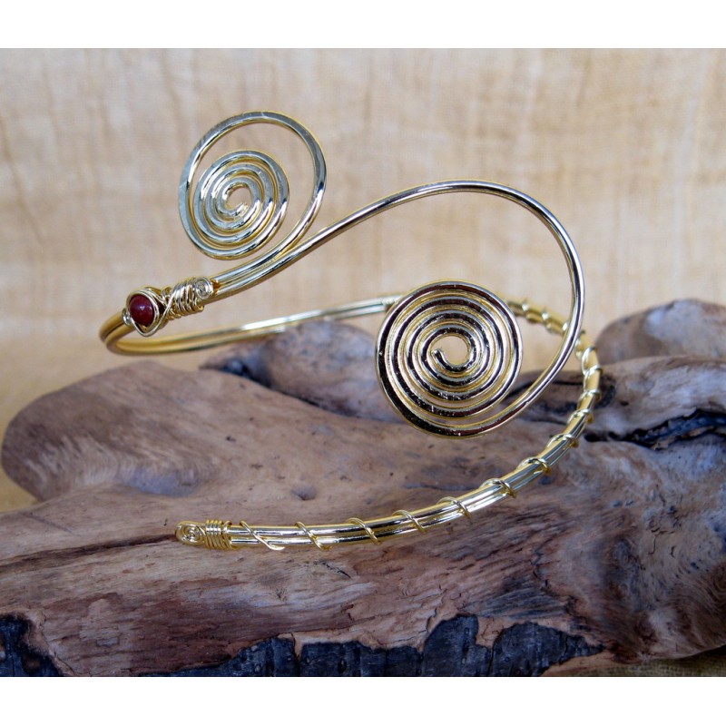 Bracciale in metallo zama semirigido dorato intrecciato da avanbraccio o doppio giro con pietrra.