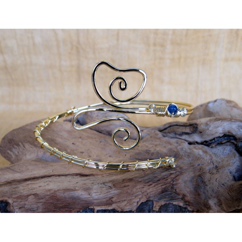 Bracciale in metallo zama semirigido dorato intrecciato da avanbraccio o doppio giro con pietrra.