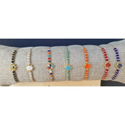 Bracciale perle miyuki e occhio di AllahDimensione centrale 4 mm,lunghezza 24 mm regolabile.Confezione da 12 pz assortiti .