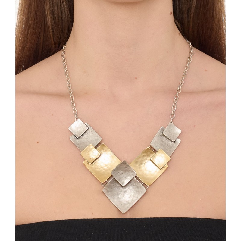 Collana in zama bicolore gold oro satinato ed argento satinato .