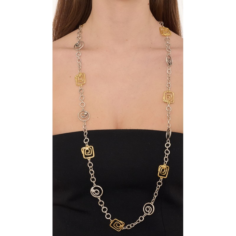 Collana in zama bicolore gold oro satinato ed argento satinato .Lunghezza collana circa 100 cm.Confezione da 1 pz.
