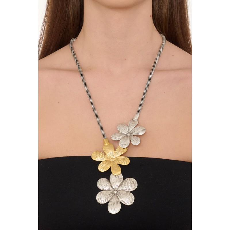 Collana in zama bicolore gold oro satinato ed argento satinato .