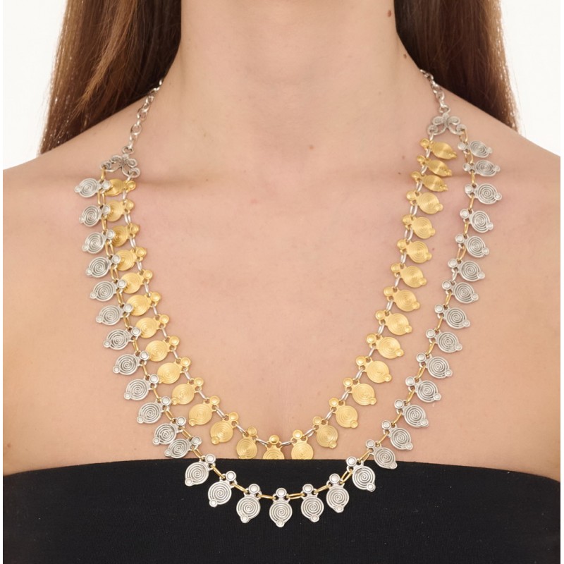 Collana in zama bicolore gold oro satinato ed argento satinato .