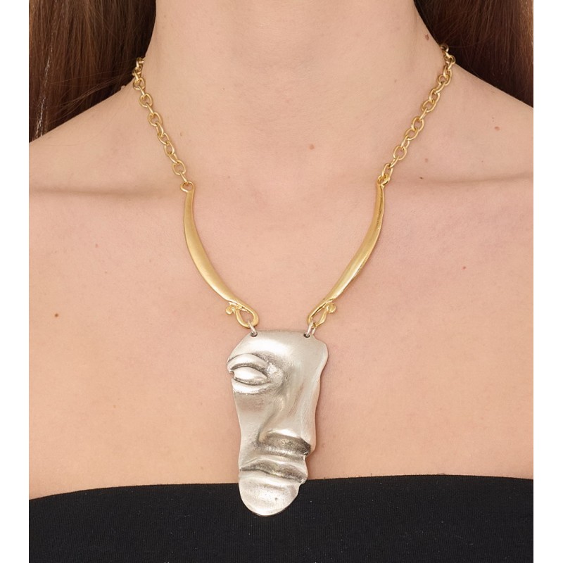 Collana in zama bicolore gold oro satinato ed argento satinato,con alcantara .