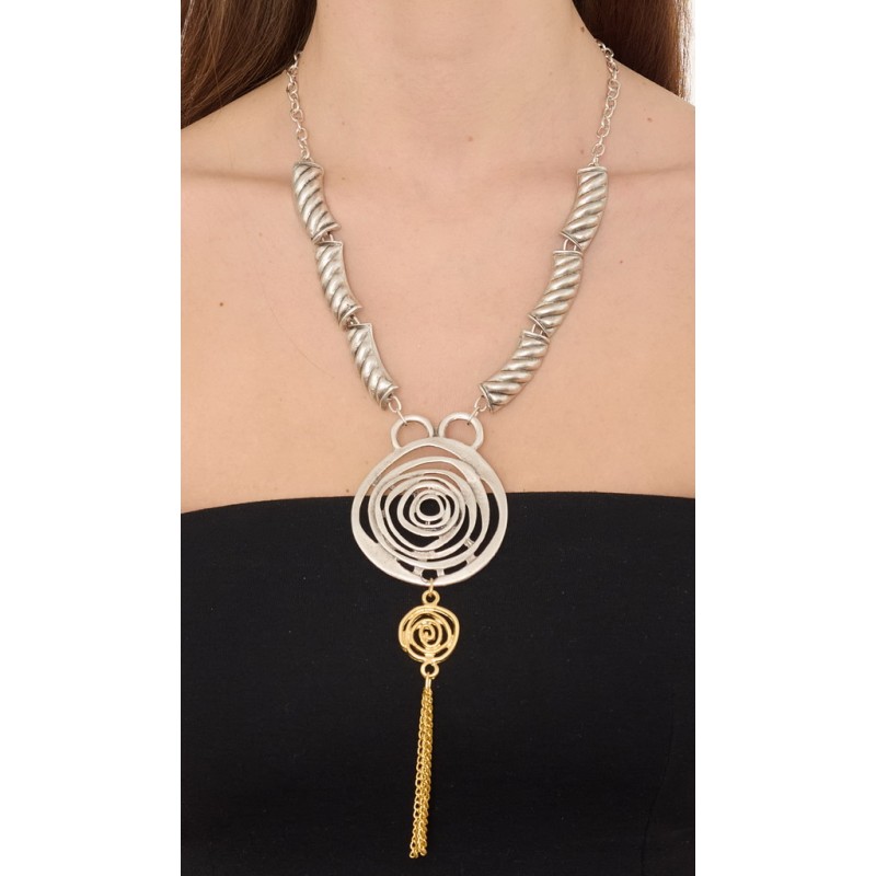 Collana in zama bicolore gold oro satinato ed argento satinato .Lunghezza collana circa 50 cm.Confezione da 1 pz.