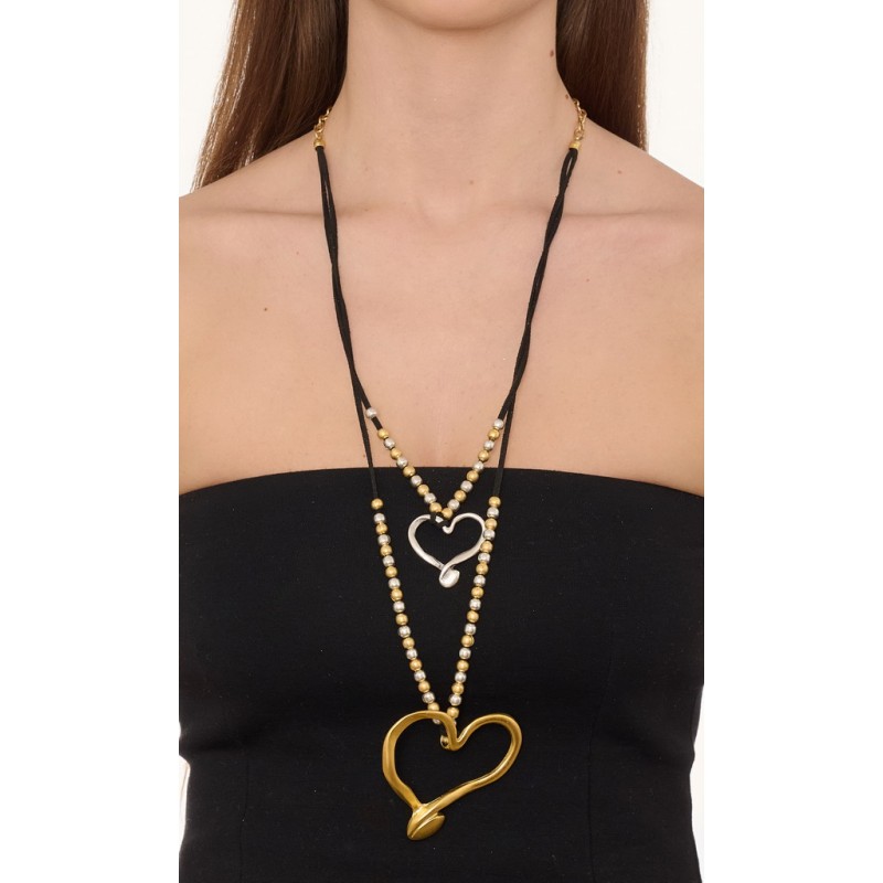 Collana in zama bicolore gold oro satinato ed argento satinato con alcantara .Lunghezza collana circa 90 cm.Confezione da 1 pz.
