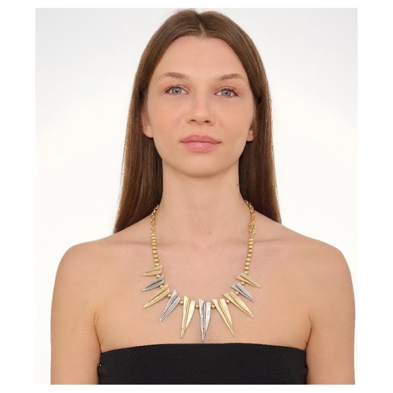 Collana in zama bicolore gold oro satinato ed argento satinato .