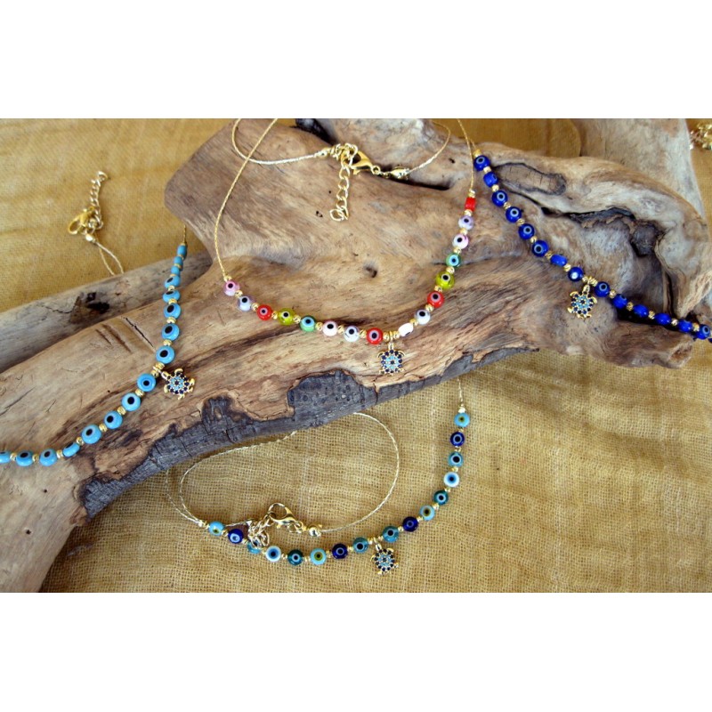Collana perline occhio di Allah con centrale tartaruga zircone.