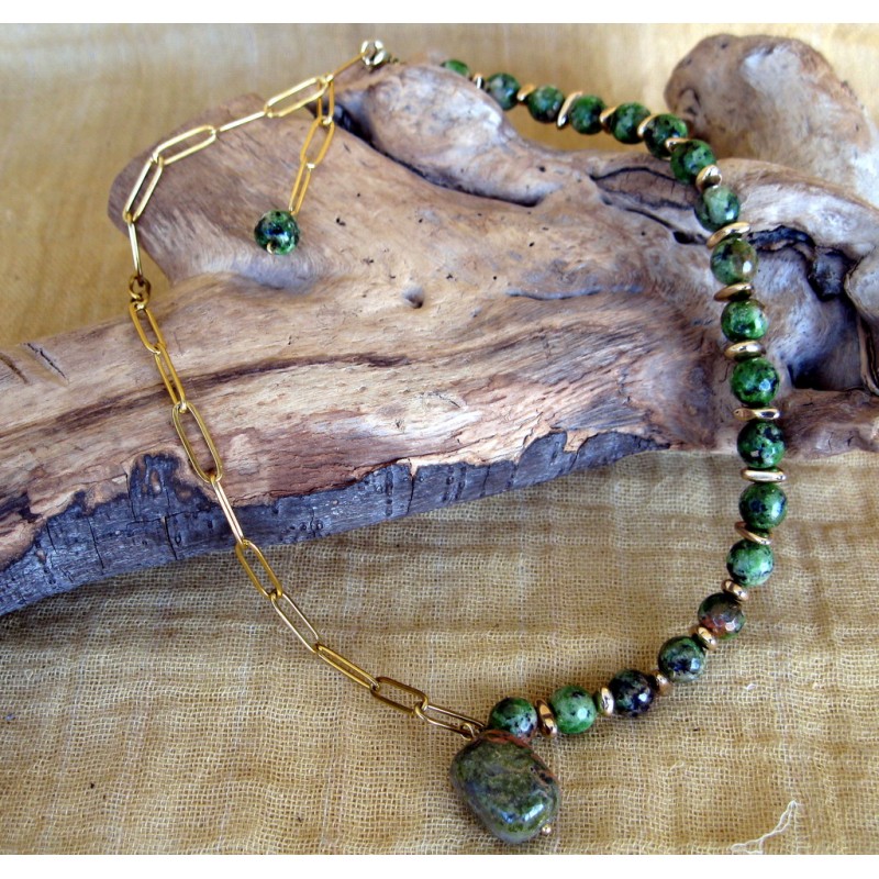 Parure in acciaio dorato e pietra dura Dimensione collana girocollo 45 cm ,8 mm diametro delle pietre.La parure è composta da collana ,orecchino.Confezione da 1 pz