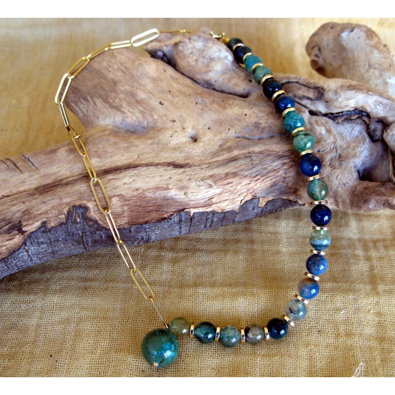 Parure in acciaio e pietra dura Dimensione collana girocollo 45 cm ,10 mm diametro delle pietre.La parure è composta da collana ,bracciale e orecchino onice nera.Confezione da 1 pz assortiti.Colori assortiti.