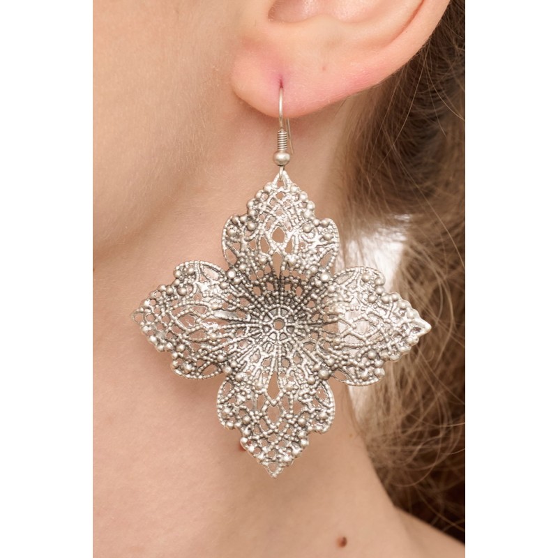 Orecchino in zama con decori etnici . Dimensione circa 70*55 mm. Confezione da 2 pz.