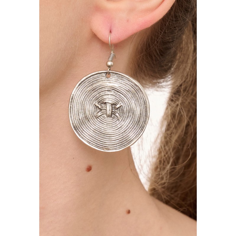 Orecchino in zama con decori etnici . Dimensione circa 44 mm. Confezione da 2 pz.
