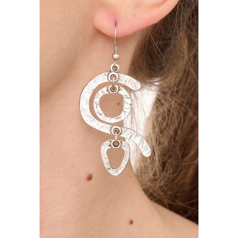 Orecchino in zama con decori etnici . Dimensione circa 45/70 mm. Confezione da 2 pz.