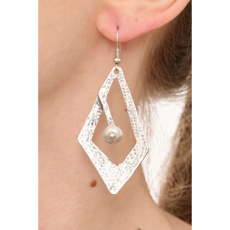 Orecchino in zama con decori etnici . Dimensione circa 44 mm. Confezione da 2 pz.