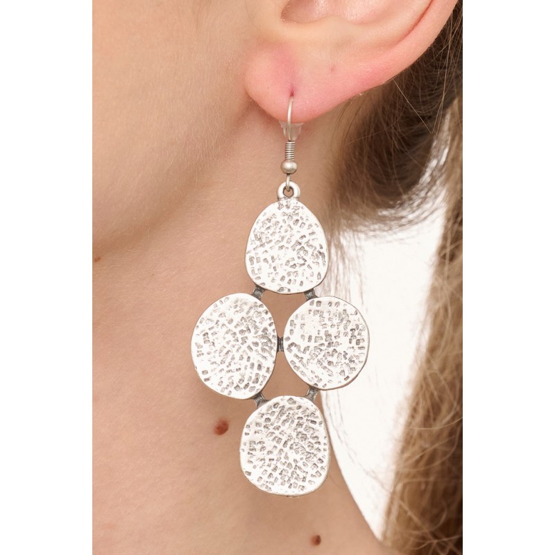 Orecchino in zama con decori etnici . Dimensione circa 44 mm. Confezione da 2 pz.