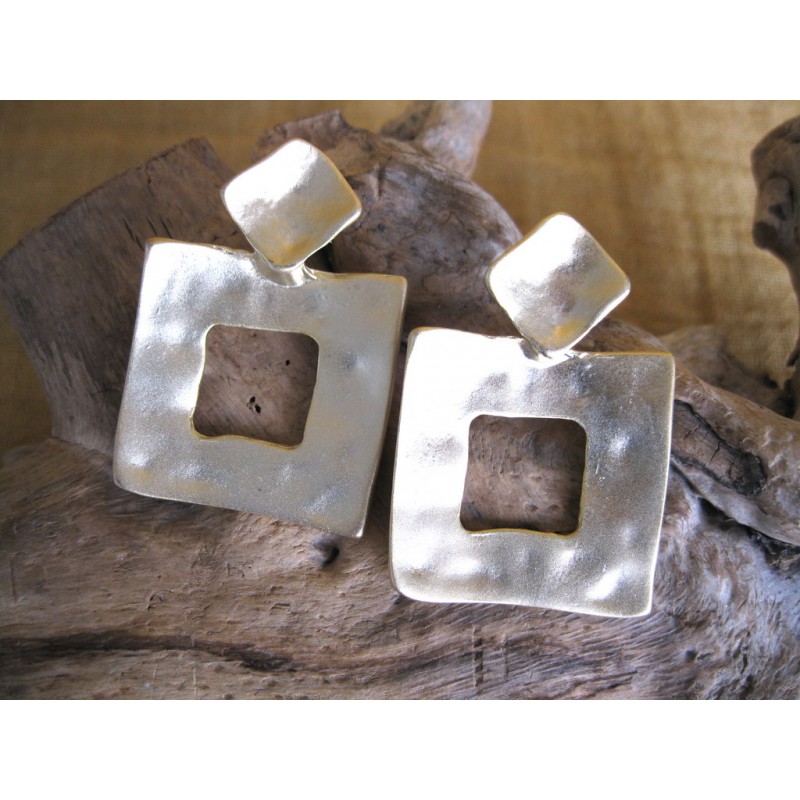 Orecchino in zama con decori etnici . Dimensione 43*43 MM. Color oro satinato. Confezione da 2 pz.