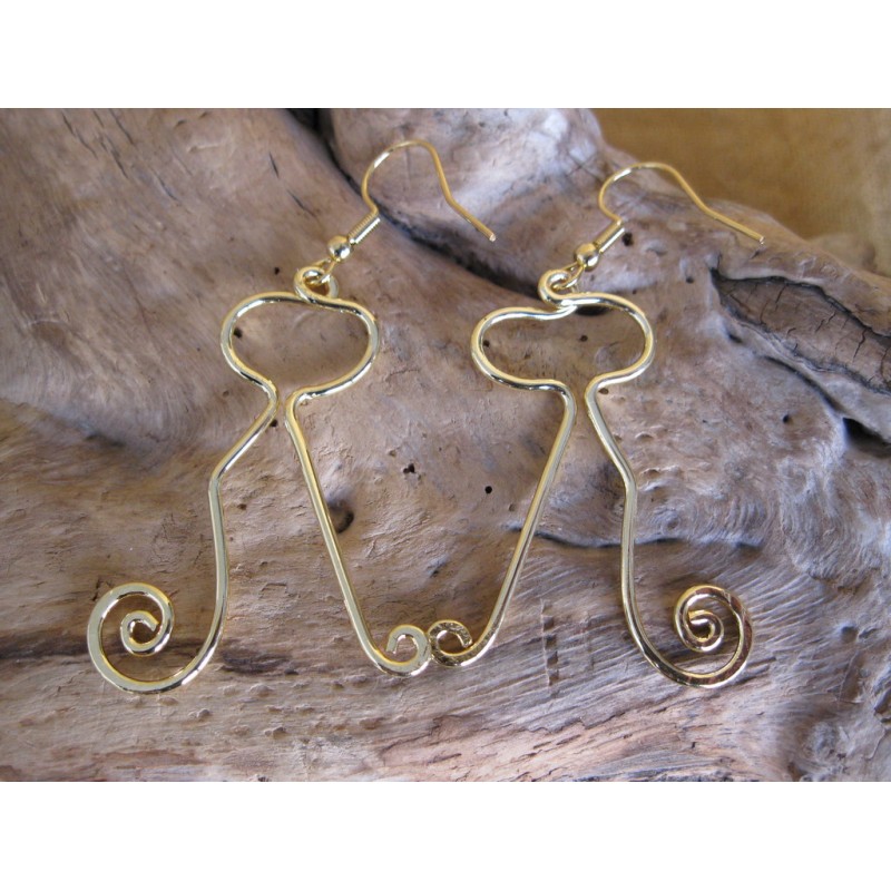 Orecchino in zama con decori etnici . Dimensione circa 75*50 mm. Color oro satinato Confezione da 1 pz.