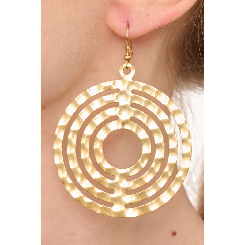 Orecchino in zama con decori etnici . Dimensione circa 46*31 mm. Color oro satinato Confezione da 2 paia.