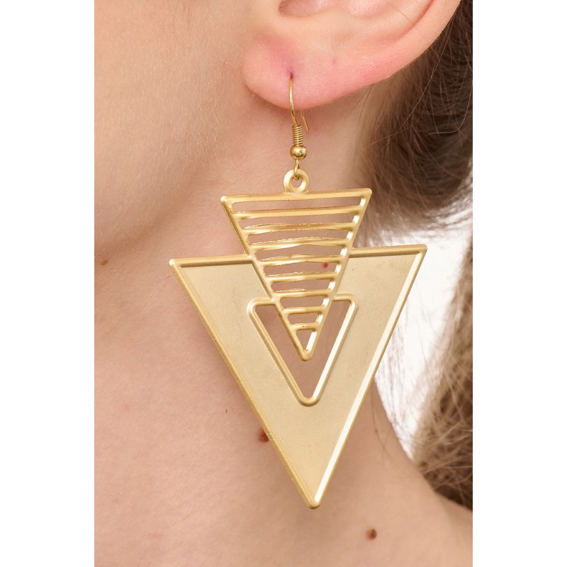Orecchino in zama con decori etnici . Dimensione circa 42*28 mm. Color oro satinato Confezione da 2 paia.