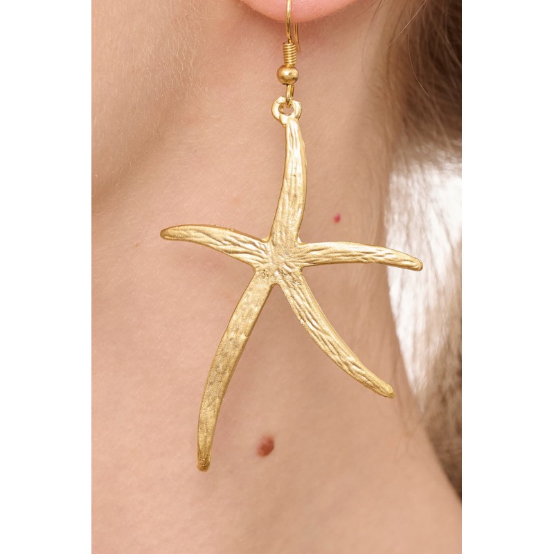 Orecchino in zama con decori etnici . Dimensione circa 43 mm. Color oro satinato Confezione da 1 pz.