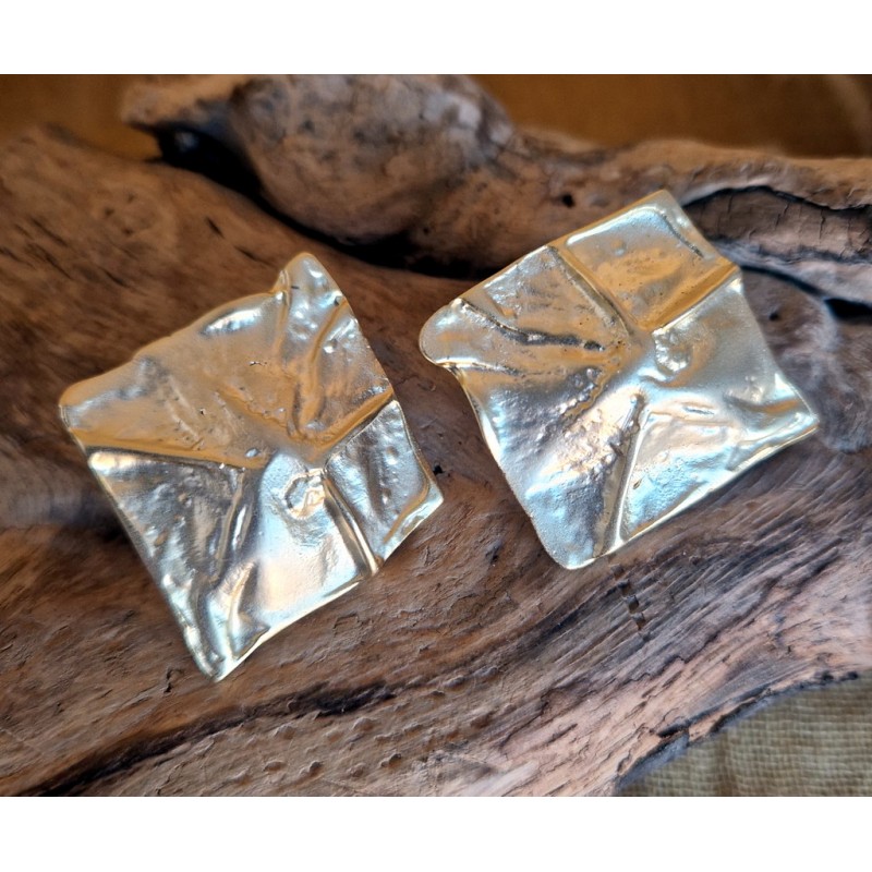 Orecchino in zama con decori etnici . Dimensione circa 36*36 mm. Color oro satinato Confezione da 1 pz.