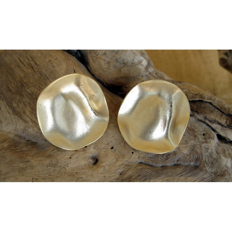 Orecchino in zama con decori etnici . Dimensione circa 57*35 mm. Color oro satinato Confezione da 2 paia.