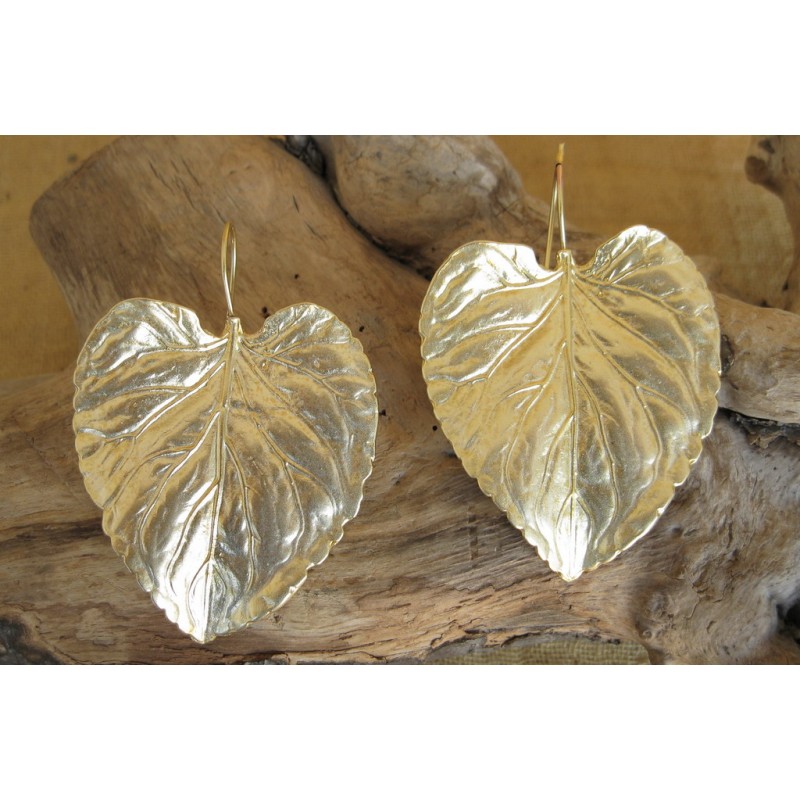 Orecchino in zama con decori etnici . Dimensione circa 75*55 mm. Color oro satinato Confezione da 2 paia.