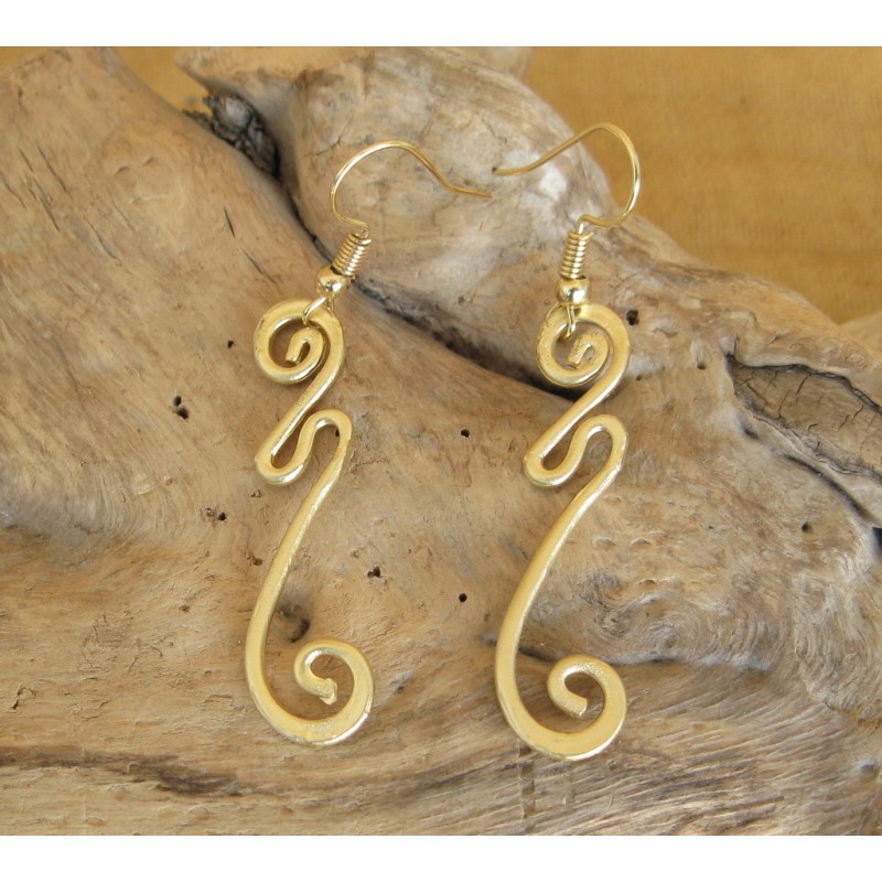 Orecchino in zama con decori etnici . Dimensione circa 50*110 mm. Color oro satinato Confezione da 2 paia.