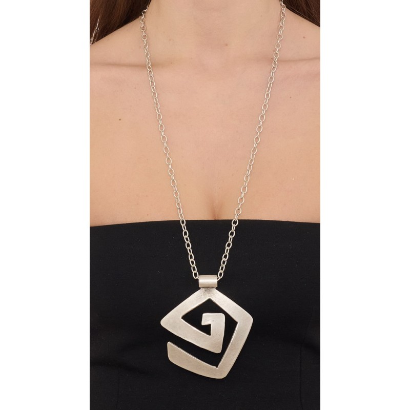 Collana con catena in zama e pendente . Lunghezza della catena 80 cm diametro pendente circa 77*39 mmConfezione da 1 pz.